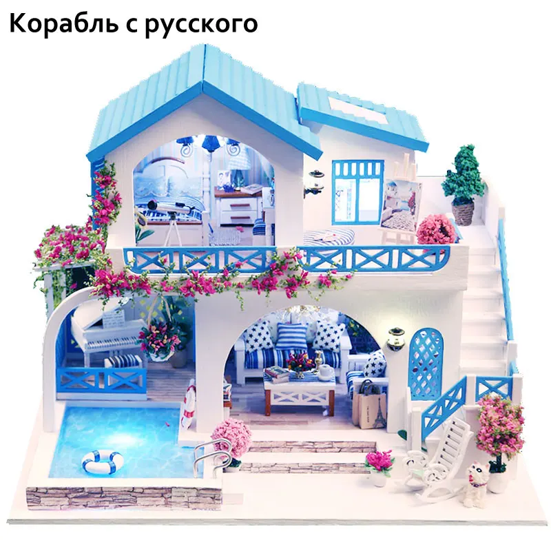 Promo Doll House Diy Furniture with Swimming Pool Girl's Toys for Children Dollhouse Miniatures Home Toy
